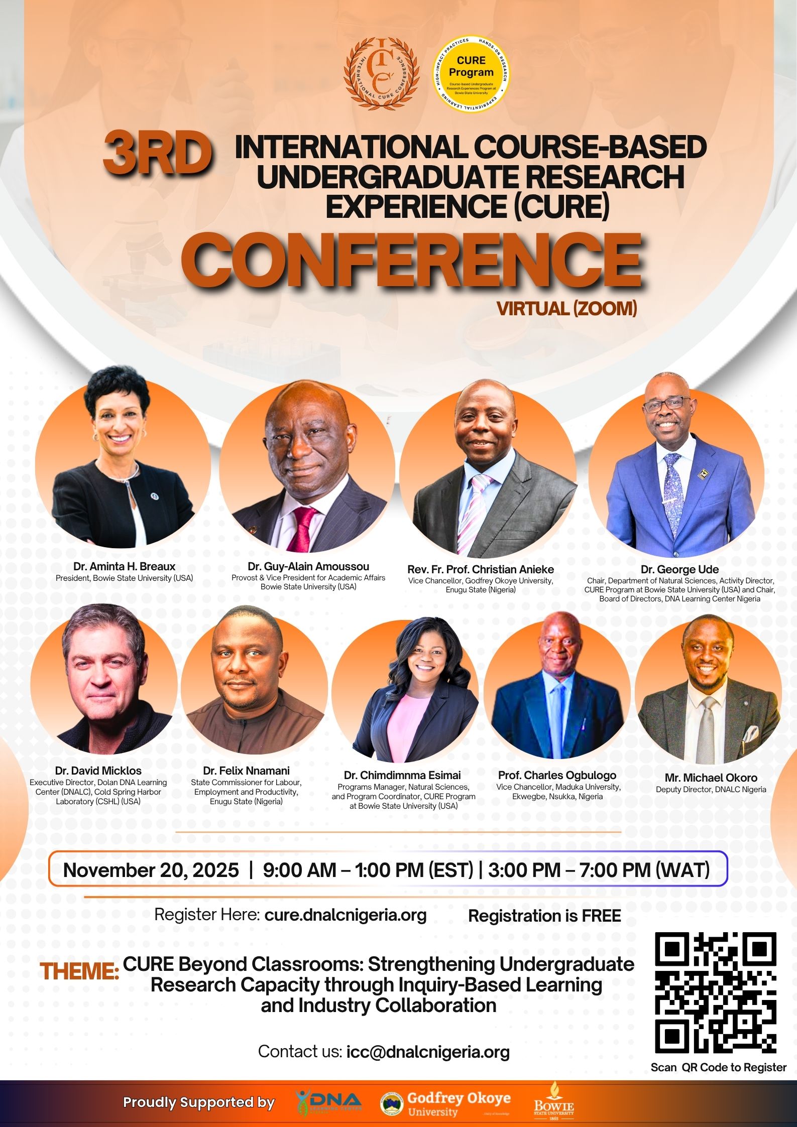 The 3rd International Course-Based Undergraduate Research Experience (CURE) Conference, will be held virtually on Thursday, November 20, 2025.